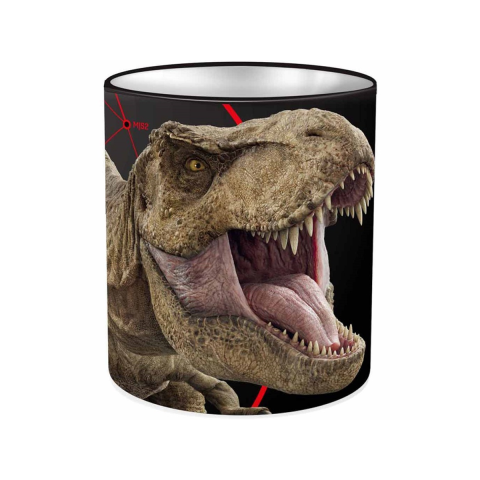 Ismerd meg a Luna: Jurassic World henger alakú fém asztali írószertartót, ami tökéletes kiegészítő minden kis dinoszaurusz-rajongó íróasztalára! Ez a 10 cm átmérőjű és 11 cm magas írószertartó lenyűgözően részletgazdag grafikával rendelkezik, amely egy hatalmas T-Rex fejét ábrázolja, éles fogakkal és félelmetes tekintettel,
