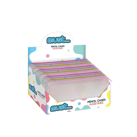 A Must... confetti dizájnos szilikon tolltartók vidámságot csempésznek a tanuláshoz és színesítik a mindennapokat. Ezek a 20x10 cm méretű tolltartók ideálisak a ceruzák, tollak és egyéb iskolai kellékek tárolására. A tolltartók négyféle változatban érhetőek el, mindegyik különböző színű konfetti mintázattal díszítve: pasztell rózs
