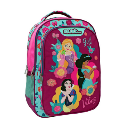 Must: Disney Hercegnők lekerekített ergonomikus iskolatáska, hátizsák 32x18x43cm