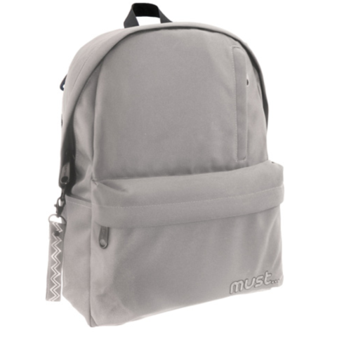 Must: Szürke négy rekeszes lekerekített iskolatáska, hátizsák 32x17x42cm
