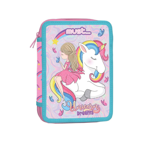 Varázsold el gyermeked iskolai napjait ezzel a varázslatos Unikornis mintás emeletes töltött tolltartóval! A Must márka által tervezett tolltartó nemcsak elbűvölő és színes dizájnnal rendelkezik, de rendkívül praktikus is, így tökéletes választás minden kislány számára. Az unikornisos motívum és a lányos, szivárványszínű dizájn biztosan elnyeri gye
