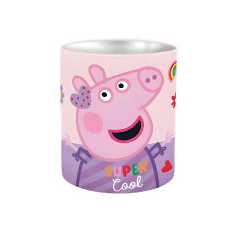 Peppa malac henger alakú fém asztali írószertartó 10x11cm