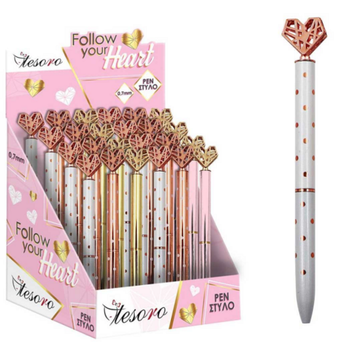 A Luna: Tesoro Golyóstoll szívecskés véggel romantikus és bájos toll, amely tökéletes a szerelmeseknek és a romantikus szellemű embereknek. A toll szívecskés véggel rendelkezik, amely különleges és szép megjelenést kölcsönöz neki. Különböző változatokban érhető el, hogy mindenki megtalálhassa a saját stílusának megfelelőt. A toll minős