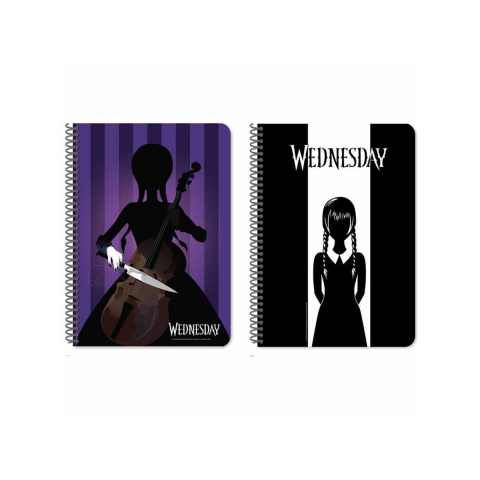 Varázsold el a jegyzetelést ezzel a Luna Wednesday vonalas spirálfüzettel! Az A/4-es méretű, 60 oldalas füzet két különleges dizájnban érhető el, amelyek a népszerű Wednesday Addams karakter világát idézik meg. Az egyik borítón Wednesday hegedülés közben látható, ahol a hegedűvonó helyett egy kést tart, a másik borítón pedig a jól