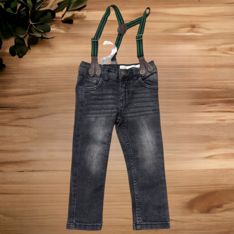 Vagány nadrágtartós farmer Egyenes szabású, dereka kapcsos és cipzáros, zsebes, állítható gumis nadrágtartóval. Hibátlan állapotú.