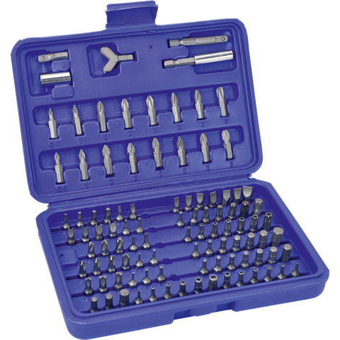 Az ELLIX biztonsági bitkészlet átfogó kínálattal rendelkezik: 100 darab szerszámot tartalmaz, amelyek króm-vanádium acélból készültek. A 25 mm-es, különböző fejekkel és bittartókkal rendelkező biteket egy praktikus tárolódobozban szállítjuk.