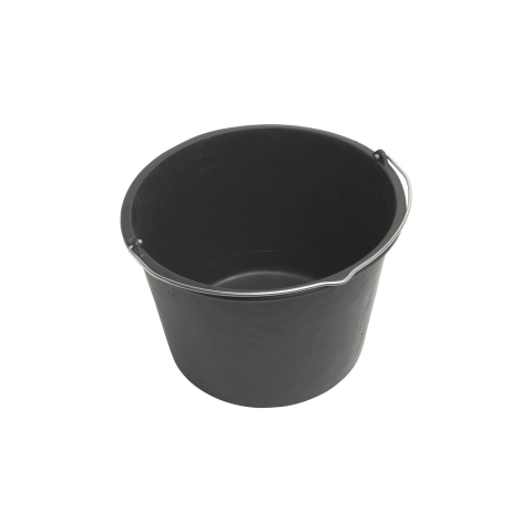 Az erős építési vödör környezetbarát, homogén polietilén-regenerát anyagból készült, és literskálával, megerősített fenékkel és a kényelmesebb hordozást lehetővé tevő füllel rendelkezik. Az építési vödör űrtartalma 12 l, felső átmérője 31 cm, alsó átmérője 24,5 cm. A vödör teljes magassága 25 cm.