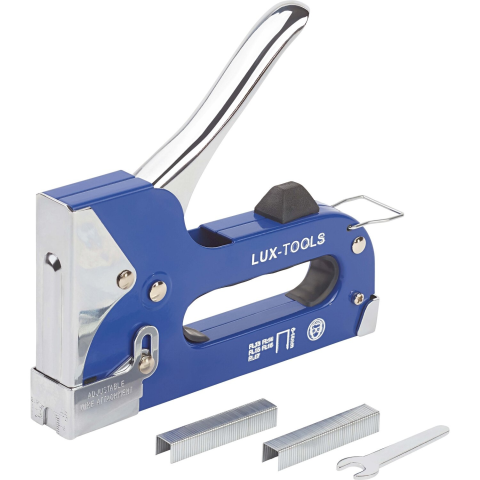 A LUX-TOOLS Classic kézi tűzőgép panelek, szigetelőanyagok és kábelek rögzítésére alkalmas. Robusztus házzal és ergonomikus fogantyúval rendelkezik. A kézi tűzőgéphez 13 mm - 17 mm méretű tűzőkapcsok illeszkednek.