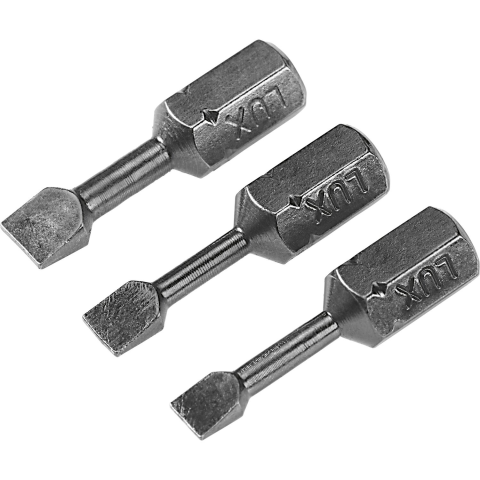 A LUX-TOOLS Comfort bitkészlet megbízhatóan használható az igényes és sokoldalú csavarozási munkák során. A bitek speciális eljárással edzett acélból készültek, amely hosszú élettartamot garantál. 6,3 mm (1/4") méretű bittartóba csavarva rögzíthetők, amely külön kapható. A speciális torziós kialakítás optimális erőátvitelt eredményez, ami megkönnyíti a munkát. A csomag három darab, hornyolt csavarhoz való bitet (4 mm / 4,5 mm / 5,5 mm) tartalmaz.