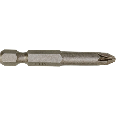 A PZ2 LUX-TOOLS Standard csavarbehajtó csillagfejű csavarhoz egy robusztus standard bit barkácsolók számára. A bit 50 mm hosszú, és standard csillagfejű csavarokhoz használhatók. A munkavégzés a szokásos 6,3 mm-es (1/4") bittartókkal lehetséges.