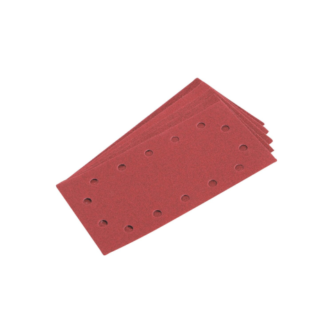 A 93 mm x 230 mm-es, K80-as szemcseméretű LUX TOOLS csiszolólap 8 oldalsó lyukkal rendelkezik és alkalmas faanyagok és fémek megmunkálására használt rezgőcsiszoló gépekhez. A csomagolás 10 csiszolólapot tartalmaz.