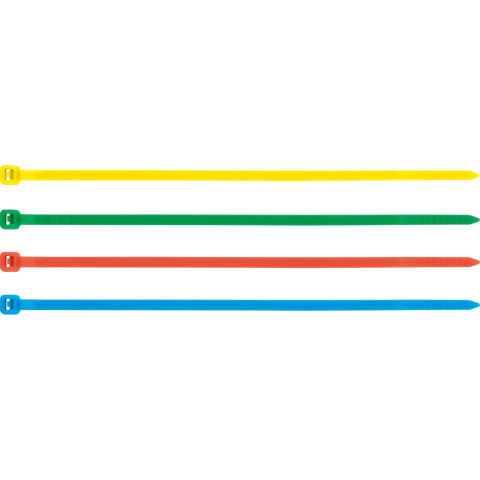 A színes, műanyagból készült LUX-TOOLS kábelkötegelő kábelek, vezetékek és tömlők kötegelésére, szervezésére és rögzítésére alkalmas. Belső fogazatának köszönhetően biztos tartást garantál. A kábelkötegelők hossza 150 mm, szélessége pedig 3,6 mm. A csomag