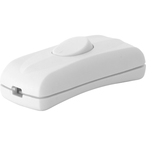 A fehér közbenső zsinórkapcsoló erős műanyagból készült, és két egypólusú H03VVH2-F kábel közé szerelhető. Így a csatlakoztatott lámpa tetszés szerint be- és kikapcsolható. A kapcsoló tehermentesítővel rendelkezik. Névleges feszültsége 230 V, teljesítménye 2 A. Kizárólag beltéri használatra alkalmas.