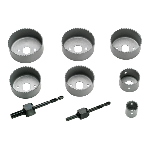 A 9 részes LUX-TOOLS lyukfűrész készlet speciálisan villanyszerelők részére lett kialakítva. A lyukfúró precíz központosságú és hosszú élettartamú, belső szakipari munkákhoz ideális. Puha faanyagba és gipszkartonba fúrt nagyobb lyukak készítésére alkalmas. A készlet 22 mm, 41 mm, 54 mm, 57 mm, 60 mm, 64 mm, 67 mm átmérőjű fúrókoronából és 2 csatlakozótengelyből áll központosító fúróval.