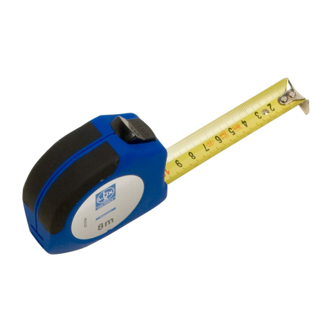 A LUX-TOOLS zsebmérőszalag 8 m hosszú és 25 mm széles. Puha házával, rögzítőgombjával és övcsatjával kényelmes használatot biztosít. A szalag a ház fekete alsó részének megnyomásával ideiglenesen rögzíthető.