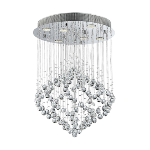 A Chester Luxera 62412 mennyezeti kristály lámpa hat GU10 foglalattal rendelkezik, amelyek cserélhető fényforrásokkal szerelhetők fel. A lámpatest modern stílusú, anyaga fém és áttetsző kristály, színe ezüst, ami elegáns megjelenést biztosít. A lámpa átmé