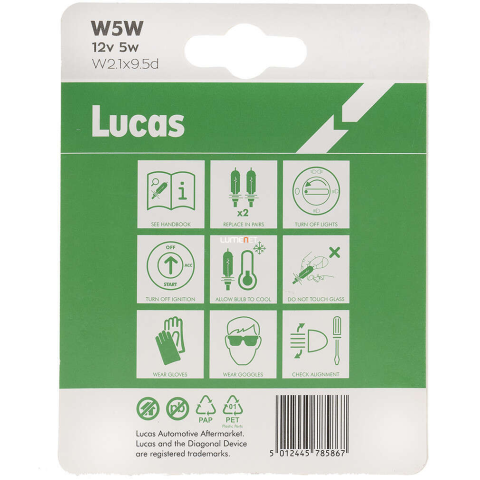 LUXLINE spol. s r.o. Lucas 12V W5W jelzőizzó, 2db/bliszter autó izzó, izzókészlet 1 kép