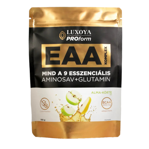 A Luxoya EAA Komplex egy cukormentes, alma és körte ízű vegán italpor, amely 9 esszenciális aminosavat – köztük a BCAA-kat – optimális arányban biztosítja az izomfehérje-szintézis és az izomtömeg megőrzése érdekében. Kiváló választás edzés előtt, közben v