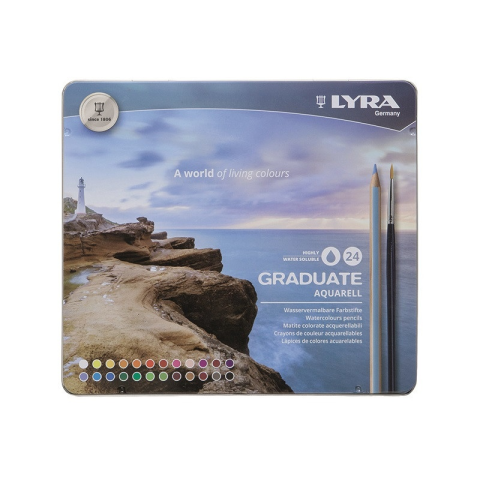 Lyra Színes ceruza LYRA Graduate Aquarell hatszögletű fémdoboz 24 db/készlet színes ceruza termékleírás