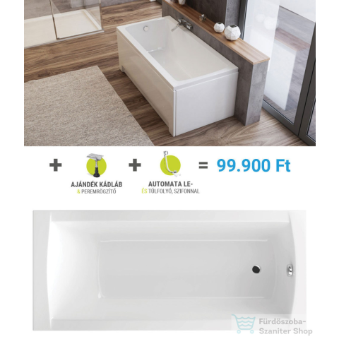 CSOMAGAKCIÓ! Az ár az alábbi termékeket tartalmazza: - M-acryl VIVA 170x70 egyenes kád (12452) - M-acryl kádláb + peremrögzítő (15338) - M-acryl 60 cm-es kád le- és túlfolyó, króm (15200)
