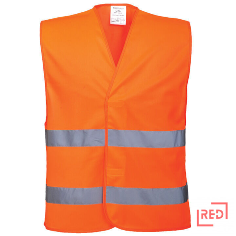 Jól láthatósági mellény A Portwest C474 jól láthatósági mellény 100% poliészter anyagból készül, elől tépőzárral összezárható. Az alsó részén két fényvisszaverő szalag fut körbe. A termék megfelel az EN471 class 2:2 szabványnak. A méret tépőzá