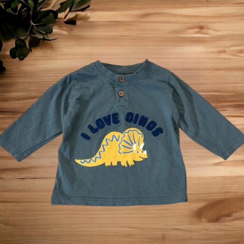 Dinós, pamut felső Egyenes szabású, kerek nyakkivágású. Kellemes pamut anyag. Hibátlan állapotú.