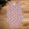 Ujjatlan body Egyenes szabású, kerek nyakkivágású, ülepnál patentos. Törtfehér alapon, halvány rózsaszín mintás. Kellemes pamut anyag. Hibátlan állapotú.