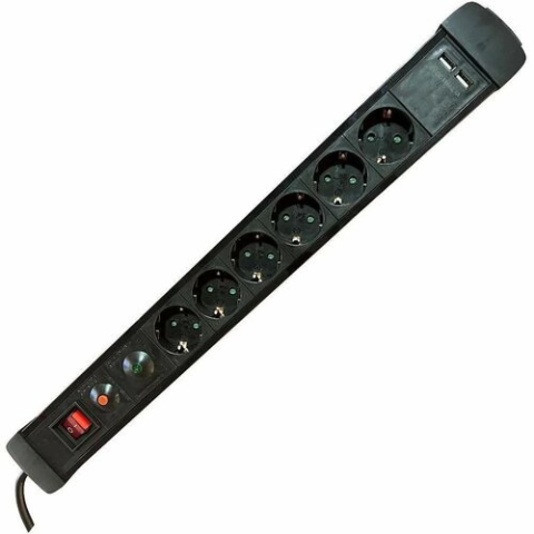 M-CAB 220V Túlfeszültség védő elosztó 6 aljzatos 3m - Fekete (POW0026)