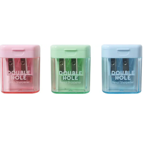 Pasztell színű, műanyag 2-es, tartályos hegyező, kiváló minőségű acélpengével.