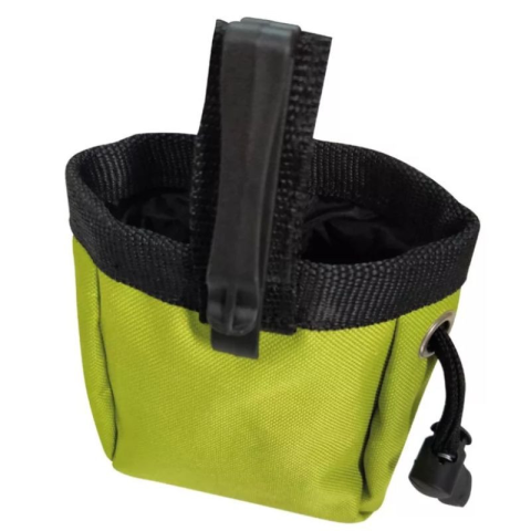 Nagyméretű, praktikus övre akasztható jutalomfalat tartó, amelyet kifejezetten úgy terveztek, hogy könnyedén övre lehessen akasztani. Zöld színben. Az eszköz anyaga tartós és könnyen tisztítható, így ideális a mindennapi használatra. A tartó tágas bels