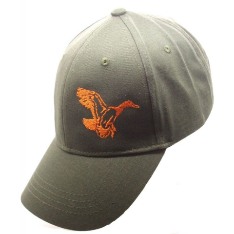 Olívzöld sapka narancssárga vadkacsás hímzéssel Egyszerű, mégis különleges darab. Az olívzöld baseball sapka remekül beleolvad a környezetbe, élénk narancssárga hímzése pedig félreérthetetlenül idézi meg a kecsesen felröppenő vadkacsa alakját. Kellemes viselet, 100% pamutból, hátul tépőzáras méretállítóval. Biztosan megdobogtatja a vadászok és természetjárók szívét.