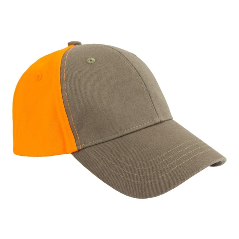 100% pamutból készült vadász baseball sapka olívzöld és narancs színben A sapka elülső része zöld színű, a hátulja viszont élénk narancssárga. Ennek a színösszeállításnak az előnye, hogy szemből rejtve maradhatunk, azonban hátulról jól észrevehető lesz a fejfedő, ezáltal elkerülhetőek a vadászbalesetek. Hátul műanyag állítási lehetőséggel. Belső alapkerülete 58 cm.