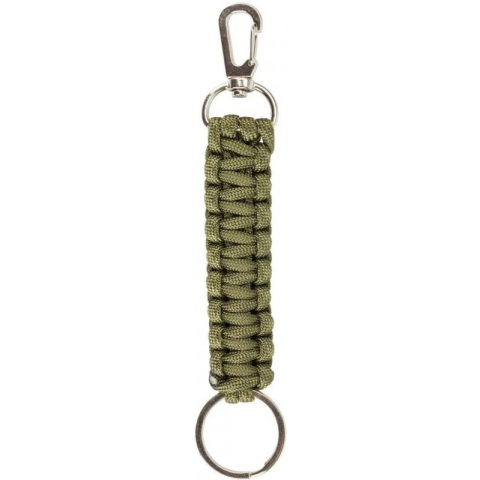 Divatos kulcstartó Paracord technikával fonott nylon zsinór kulcstartó fémkarikával és karabinerrel. A military stílusjegyeket megtartva katonai zöld és fekete színekben kapható.