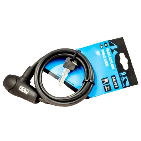 M-Wave kulcsos sodronyzár, 150 cm x 8 mm, vázkonzol nélkül, fekete