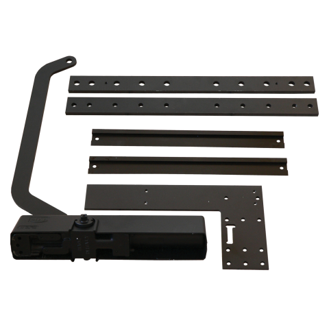 MAB Oldalfalra (vagy kültéri oszlopra) szerelhető, vezetősínnel, max 1400x2800mm, kettő külön állítható sebesség, állítható erő, nyitóirányú fék 70°-tól