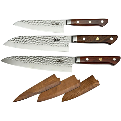 MaceMaker FUJI SanMai Konyhai kés szett fa tokkal, 3 db (8594176645278)