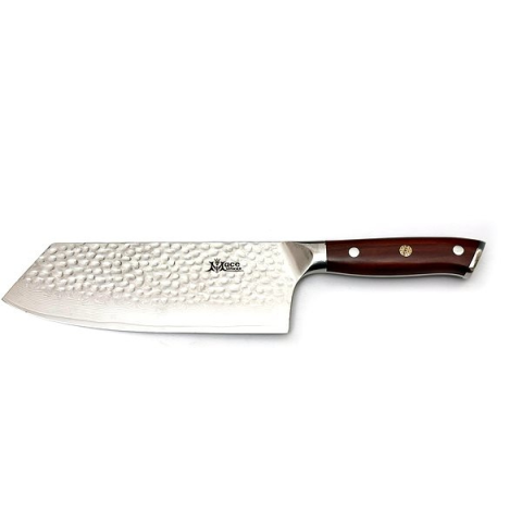 Konyhakés - damaszkuszi acél, penge hossza 19,5 cm, santoku kés, szakácskés és bárd, markolat anyaga fa Ez a minőségi bárd az összes háztartás elmaradhatatlan eleme lesz. A minőségi MaceMaker santoku kés, szakácskés és bárd tökéletes sokféle konyhai tevékenységhez, a szeletelésen kívül darabolásra is ha