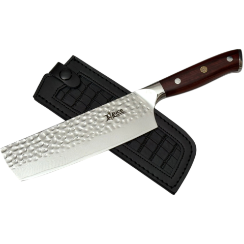 Konyhakés - damaszkuszi acél, penge hossza 17 cm, santoku kés, szakácskés és bárd, markolat anyaga fa Ez az egyedülálló bárd az összes háztartás csillaga lesz. A kitűnő MaceMaker santoku kés, szakácskés és bárd megfelelő sokféle konyhai feladathoz, vágáson kívül akár aprítani, vagy darabolni is lehet