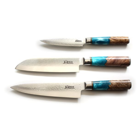 Késkészlet - santoku kés, szakácskés és univerzális kés, nyél anyaga fa, penge anyaga damaszkuszi acél Egy késkészletet keresel, amellyel bármilyen ételt elkészíthetsz? Akkor tökéletes választás számodra a nagyszerű MaceMaker késkészlet, amely minden konyhában jól beválik. A készlet a következő késeke