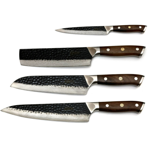 Késkészlet - santoku kés, szakácskés és univerzális kés, nyél anyaga fa, penge anyaga damaszkuszi acél Egy nagy késkészlet beszerzését fontolgatod, amelyet bármilyen szeleteléshez felhasználhatsz? Akkor feltűnhet neked a minőségi MaceMaker késkészlet, amelyre minden háztartásban szükség van. A készlet