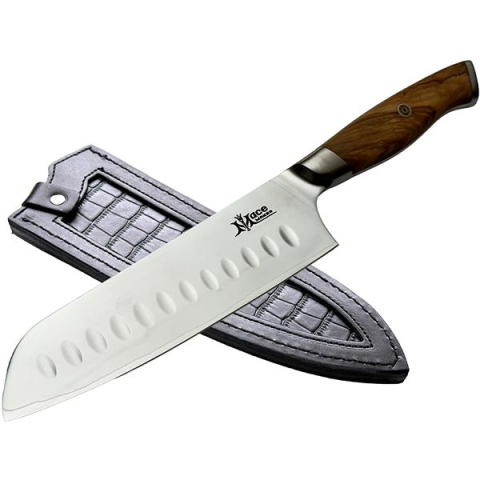 Konyhakés - damaszkuszi acél, penge hossza 17,5 cm, santoku kés, szakácskés és santoku, markolat anyaga fa Ez a hibátlan konyhakés bármely háztartás pótolhatatlan eleme lesz. A nagyszerű MaceMaker santoku kés, szakácskés és santoku megfelelő különféle konyhai feladatokhoz, a szeletelésen kívül darabolásra