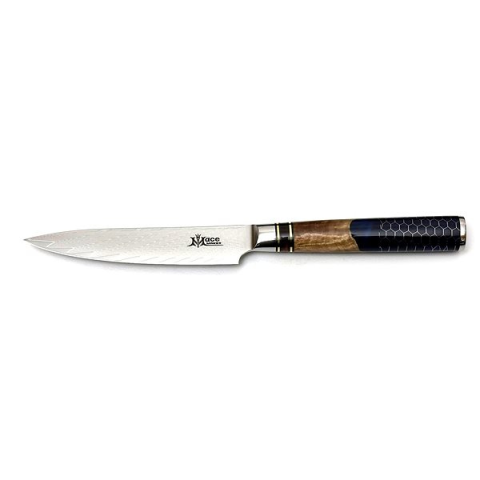 Konyhakés - damaszkuszi acél, penge hossza 13 cm, santoku kés, szakácskés és zöldségvágó kés, markolat anyaga fa Ez a praktikus konyhakés bármely háztartás nélkülözhetetlen tagja lesz. A nagyszerű MaceMaker santoku kés, szakácskés és zöldségvágó kés megfelelő különféle konyhai dolgokhoz a hús- és zöldségvágástól