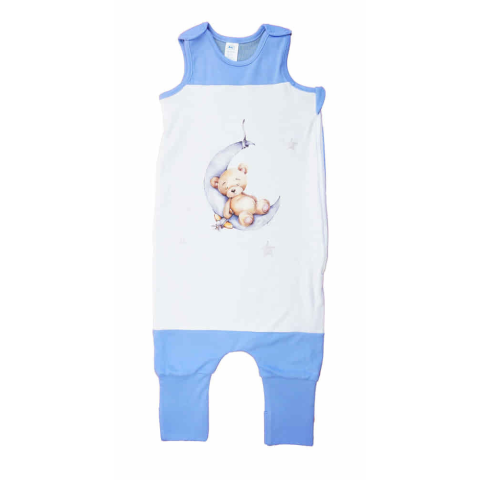 Ujjatlan tipegő hálózsák Macis mintával 2 TOG Egy igazi kis kalandra indulhat a gyermeked ezzel a gyönyörű, kék színű cuki Macis mintával nyomott tipegő hálózsákkal. Az ujjatlan, vállon patentos, oldalán szétcipzározható, 2 rétegű hálózsák nemcsak kénye