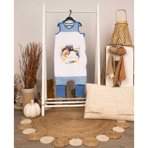 Ujjatlan tipegő hálózsák Macis mintával 3 TOG Egy igazi kis kalandra indulhat a gyermeked ezzel a gyönyörű, macis mintával nyomott tipegő hálózsákkal. Az ujjatlan, vállon patentos, oldalán szétcipzározható, 3 rétegű hálózsák nemcsak kényelmes, de prakti
