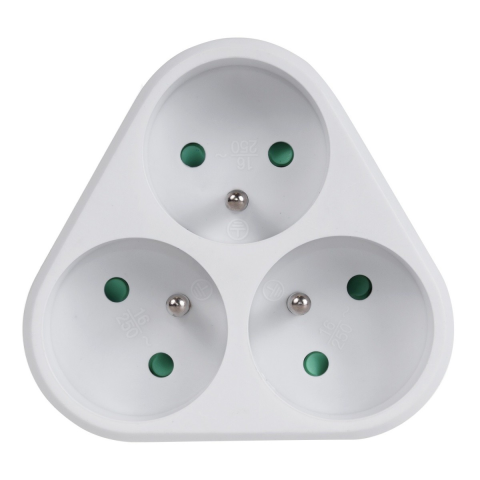 Átalakító, 3 csatlakozóaljzat, földelt, 90 fokban elforgatott