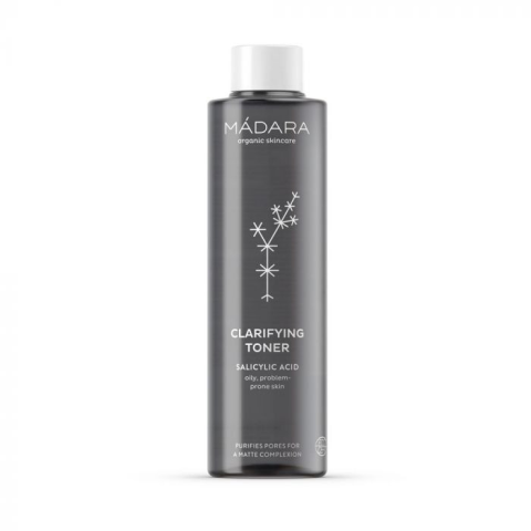 A Mádara Tisztító arctonik állatkísérletektől mentes. Az északi tölgyfa és a kálmos mélyen tonizál és bőrhámlasztó hatású.Használatától az arc kevésbé fénylik, összehúzza a pórusokat, megelőzi a bőrhibák kialakulását és egyensúlyban tartja a bőr pH ér
