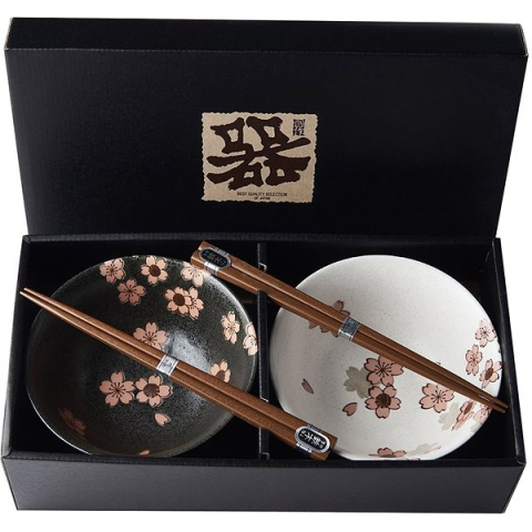 Tál készlet - rendeltetése leves és saláta, anyaga kerámia, mosogatógépben mosható és mikrohullámú sütőbe tehető, japán motívum, 2 darabos csomag A Made In Japan Cherry Blossom Tálkészlet pálcikákkal, 400 ml, 2 db fő jellemzőiA MADE IN JAPAN tálak bármilyen étkezéshez alkalmasakGyümölcsökhöz, zöldségekhez vagy salátákhoz alkalmasakEzek a tálak