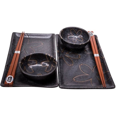 1 kép MADE IN JAPAN Sushi set virág motívummal fekete 6 db
