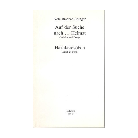 Szerző: Nelu Bradean-Ebinger Kiadó: Magánkiadás Magjelenés: 1995 Oldalszám: 76 ISBN: 9636501017 Nyelv: Német-Magyar Auf der Suche nach...Heimat / Gedichte und Essays 1989-1995 Hazakeresőben - Versek és esszék 1989-1995