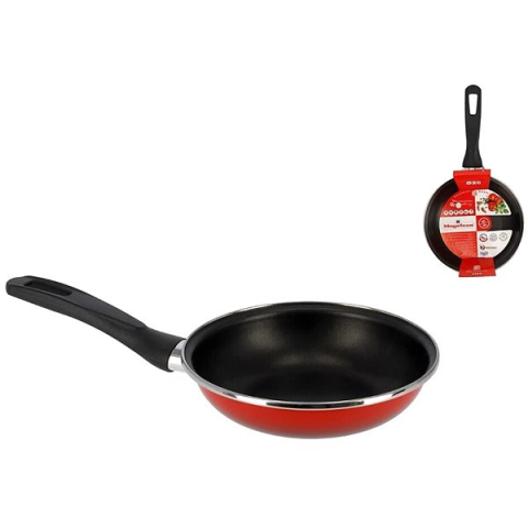 Serpenyő - kerek, az edény teste alumíniumból készült, használható elektromos, gáz, üvegkerámia és indukciós főzőlapon, tapadásmentes felület, zománcozott külső felület, magassága 6,5 cm, serpenyő felső szélének átmérője 20 cm, serpenyő aljának külső átmérője 16 cm, fekete és piros kivitel A MAGEFESA serpenyő ideális segítő lesz a konyhában. A serpenyő aljának átmérője 16 cm. A MAGEFESA Rosso serpenyő főbb jellemzőiA MAGEFESA serpenyő tapadásg